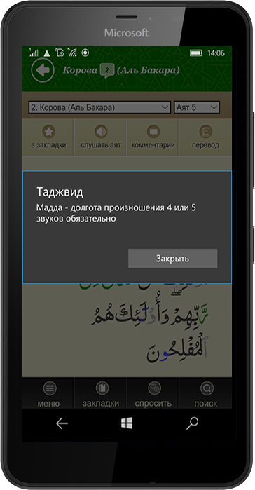 Данная функция предоставляется только в режиме чтения либо аята, либо Хадиса.